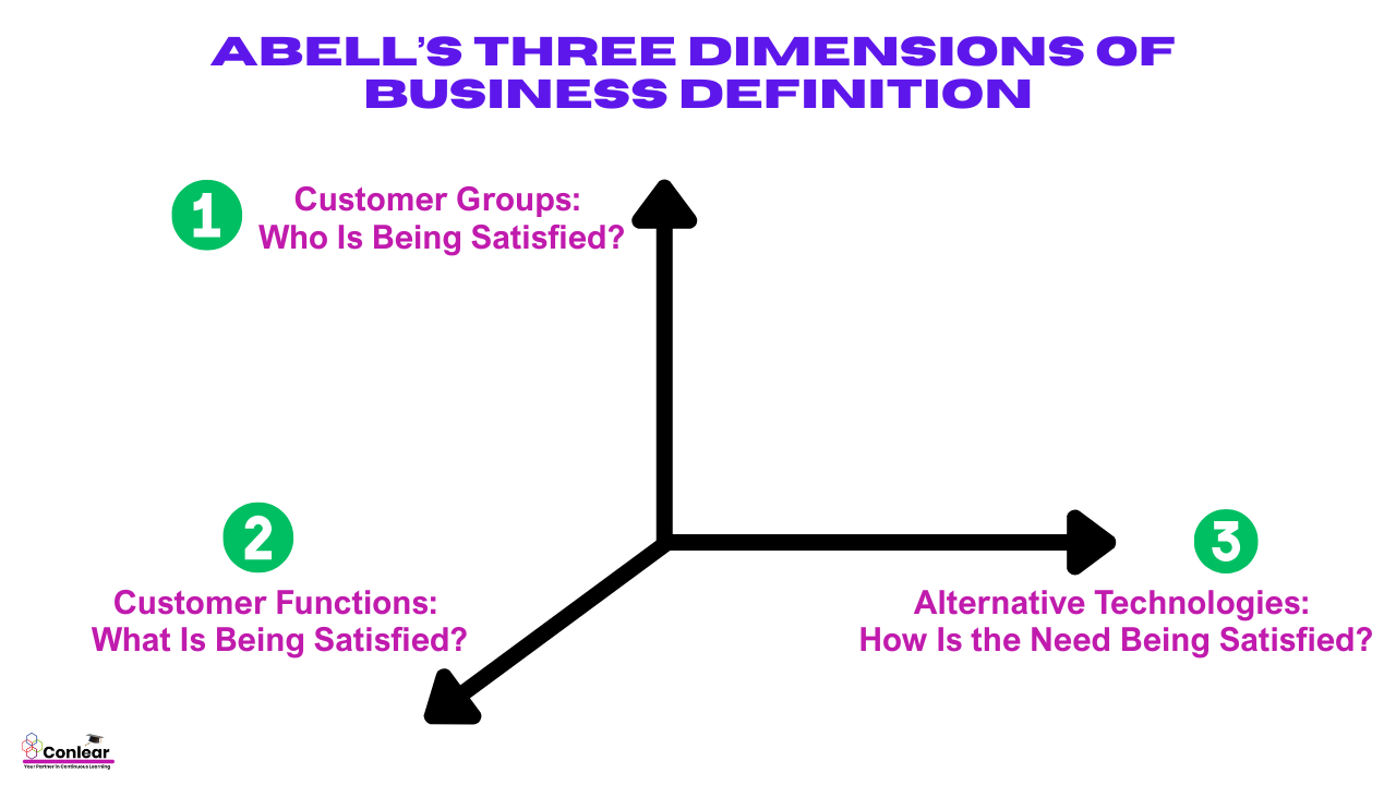 Derek Abell’s three-dimensional framework provides a powerful and practical way to define a firm’s business. By systematically examining customer groups, customer functions, and alternative technologies, managers can develop a clearer understanding of their strategic scope and competitive environment.